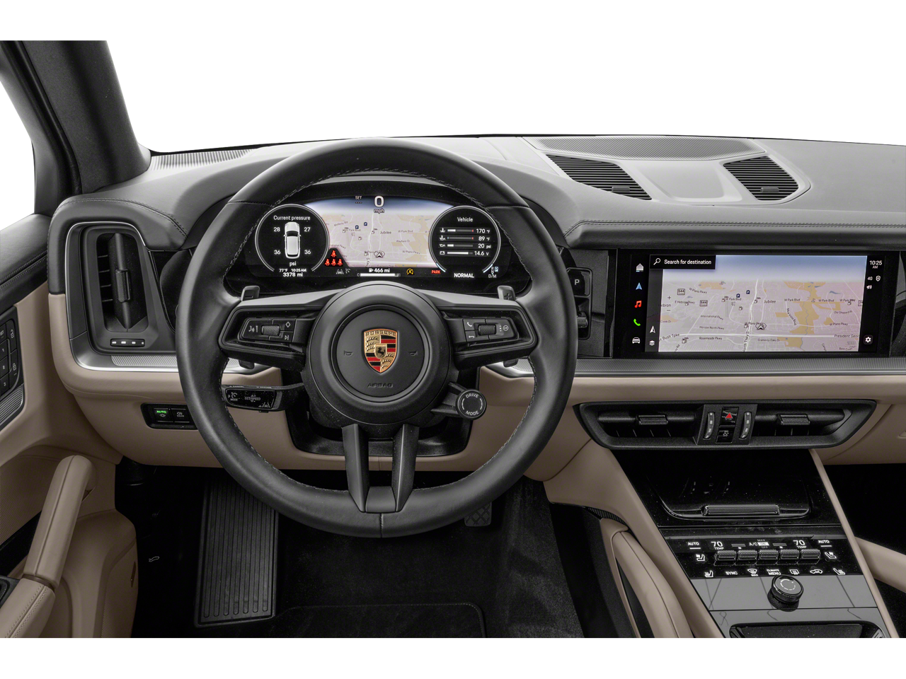 AWD 8-Speed Automatic with Tiptronic V8 Black Leather, 14 Speakers, 4-Wheel Disc Brakes, 8-Way Sport Seats, ABS brakes, Adaptive suspension, Air Conditioning, Alloy wheels, AM/FM radio: SiriusXM w/360L, Apple CarPlay & Android Auto, Audio memory, Auto High-beam Headlights, Auto-dimming door mirrors, Auto-dimming Rear-View mirror, Auto-leveling suspension, Automatic temperature control, Brake assist, Bumpers: body-color, Compass, Delay-off headlights, Driver door bin, Driver vanity mirror, Dual front impact airbags, Dual front side impact airbags, Electronic Stability Control, Exterior Parking Camera Rear, Four wheel independent suspension, Front anti-roll bar, Front Bucket Seats, Front Center Armrest, Front dual zone A/C, Front reading lights, Fully automatic headlights, Garage door transmitter: HomeLink, Heated door mirrors, Heated front seats, Heated steering wheel, HVAC memory, Illuminated entry, Knee airbag, Leather/Race-Tex Seat Trim, Low tire pressure warning, Memory seat, Navigation System, Occupant sensing airbag, Outside temperature display, Overhead airbag, Overhead console, Panic alarm, Passenger door bin, Passenger vanity mirror, Porsche Communication Management, Power door mirrors, Power driver seat, Power Liftgate, Power passenger seat, Power steering, Power windows, Radio data system, Rain sensing wipers, Rear anti-roll bar, Rear fog lights, Rear reading lights, Rear seat center armrest, Rear side impact airbag, Rear window defroster, Rear window wiper, Remote keyless entry, Security system, Speed control, Speed-sensing steering, Split folding rear seat, Spoiler, Sport steering wheel, Steering wheel mounted audio controls, Tachometer, Telescoping steering wheel, Tilt steering wheel, Traction control, Trip computer, Turn signal indicator mirrors, Variably intermittent wipers, Voltmeter, Wheels: 21 RS Spyder Design in Anthracite Grey, Black Leather.