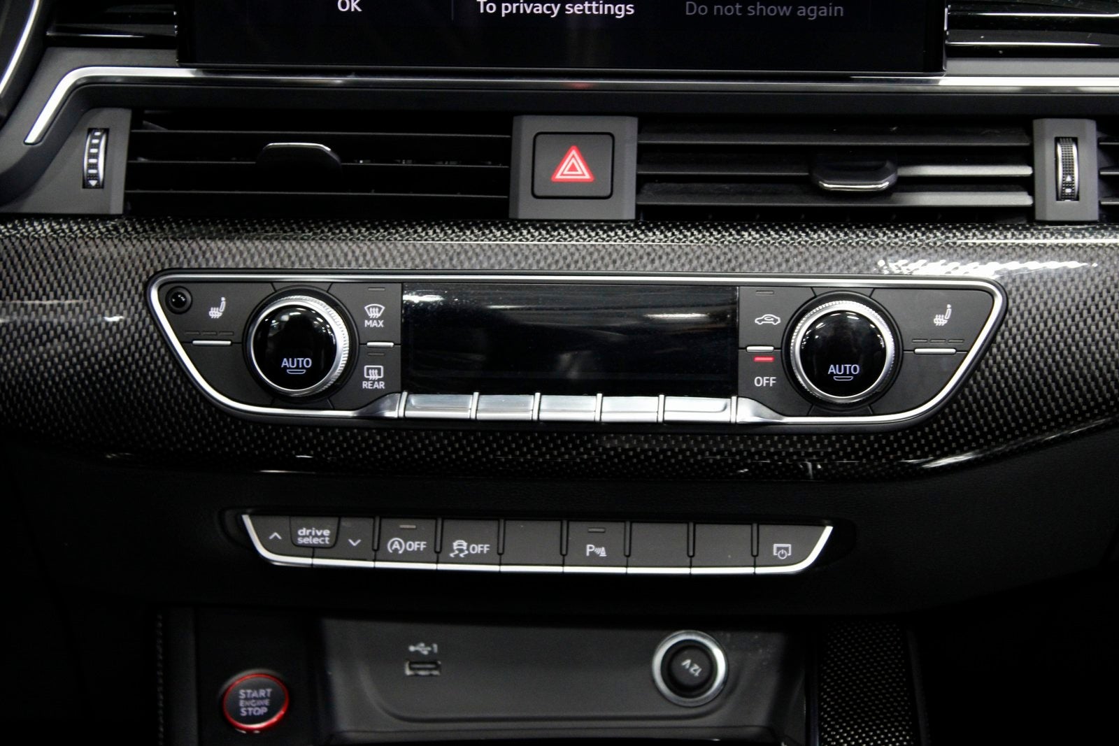 10 Speakers, 4-Wheel Disc Brakes, ABS brakes, Air Conditioning, Alloy wheels, AM/FM radio, Auto High-beam Headlights, Auto-dimming Rear-View mirror, Automatic temperature control, Brake assist, Bumpers: body-color, Compass, Convertible roof lining, Convertible roof wind blocker, Delay-off headlights, Driver door bin, Driver vanity mirror, Dual front impact airbags, Dual front side impact airbags, Electronic Stability Control, Emergency communication system: Audi connect CARE, Exterior Parking Camera Rear, Fine Nappa Leather Seating Surfaces, Four wheel independent suspension, Front anti-roll bar, Front Bucket Seats, Front Center Armrest, Front dual zone A/C, Front fog lights, Front reading lights, Garage door transmitter: HomeLink, Glass rear window, Heated door mirrors, Heated Front S Sport Seats, Heated front seats, Heated steering wheel, Illuminated entry, Integrated roll-over protection, Knee airbag, Leather Shift Knob, Leather steering wheel, Low tire pressure warning, Occupant sensing airbag, Outside temperature display, Panic alarm, Passenger door bin, Passenger vanity mirror, Power convertible roof, Power door mirrors, Power driver seat, Power passenger seat, Power steering, Power windows, Radio data system, Radio: Audi Sound System, Rain sensing wipers, Rear air conditioning, Rear anti-roll bar, Rear reading lights, Rear window defroster, Remote keyless entry, Speed control, Speed-sensing steering, Speed-Sensitive Wipers, Split folding rear seat, Steering wheel mounted audio controls, Tachometer, Telescoping steering wheel, Tilt steering wheel, Traction control, Trip computer, Turn signal indicator mirrors, Variably intermittent wipers, Wheels: 19 5-Double-Arm Design Bi-Color Finish.